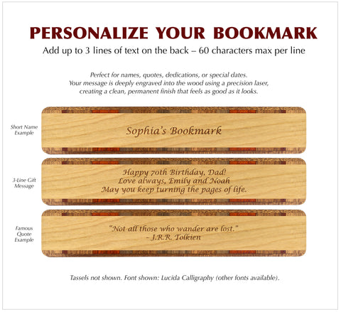 Customize the back with a laser-engraved message to create a unique and meaningful gift. Add a name, special date, or heartfelt dedication to make this bookmark truly special.